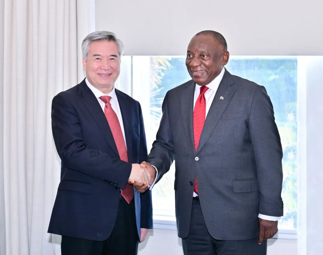 会见拉马福萨时,李希表示,中南友好源远流长,近年来在习近平主席和拉马福萨总统的引领下,中南关系步入“黄金时代”。中方愿同南方一道,落实好两国元首重要共识,夯实政治互信基础,加强发展战略对接,提升互利合作水平,加快落实中非合作论坛北京峰会成果,高质量共建“一带一路”,推动中南关系不断迈上新台阶。中方将全力支持南非担任2025年二十国集团主席国,同南方加强国际和地区事务协调合作,引领“全球南方”现代化事业蓬勃发展,推动构建人类命运共同体。