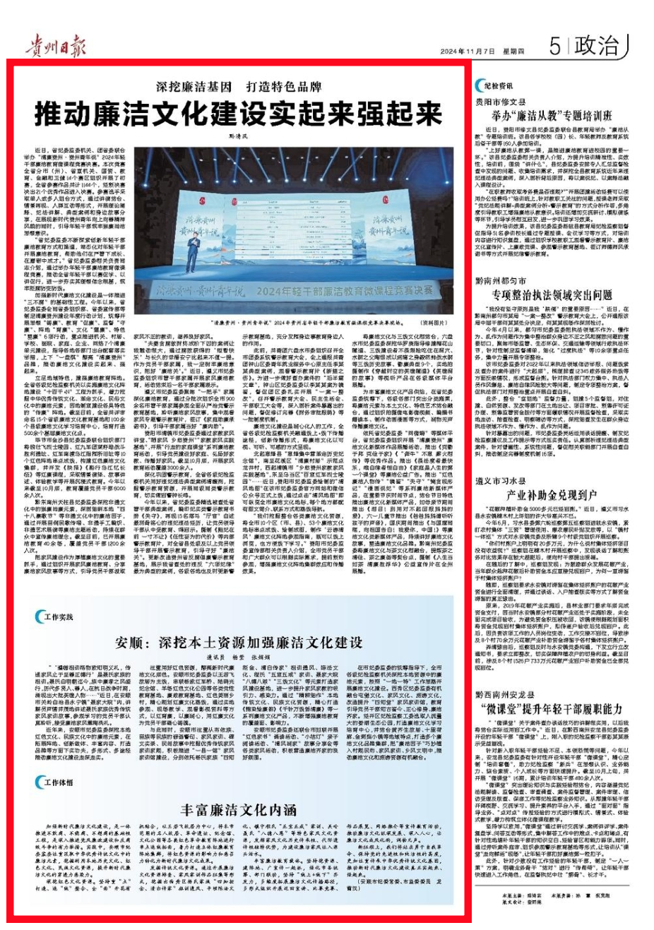 《贵州日报》“党风廉政”专版| 深挖廉洁基因 打造特色品牌 推动廉洁文化建设实起来强起来