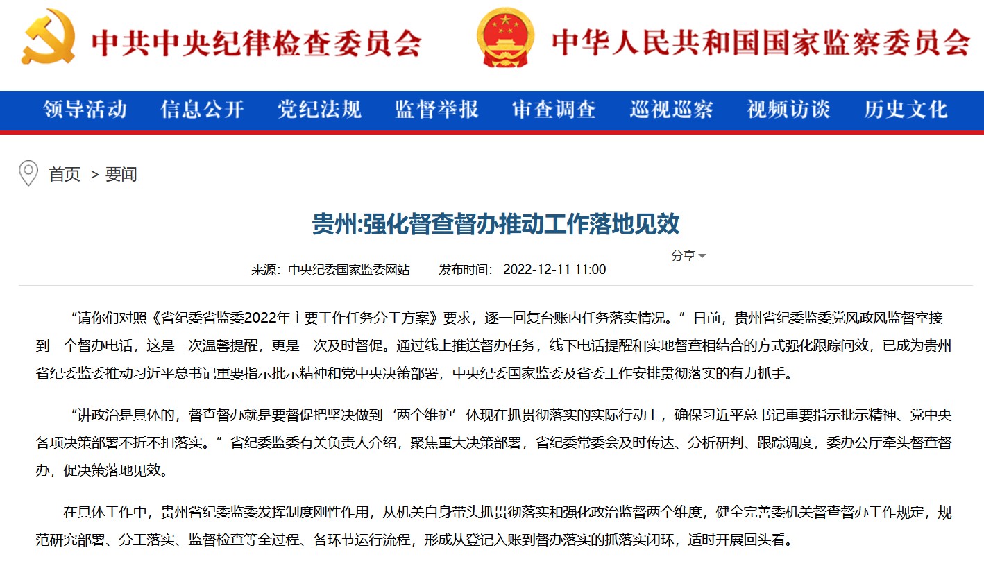 中央纪委国家监委网站丨贵州:强化督查督办推动工作落地见效