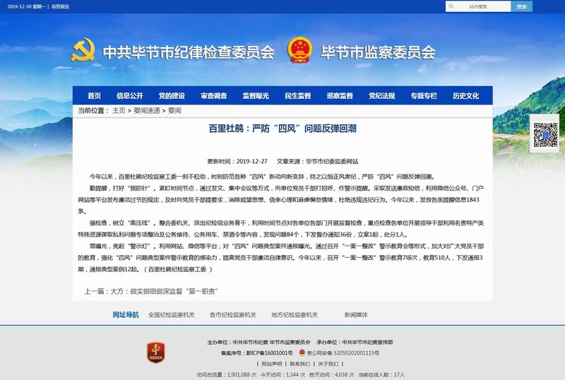 2018年12月5日毕节市纪委监委网站要闻
