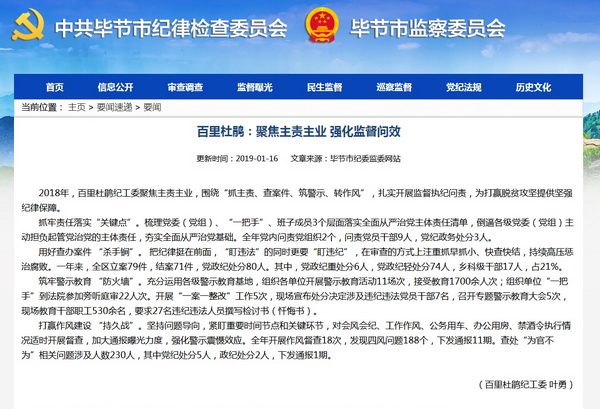 毕节市纪委监委网站:百里杜鹃:聚焦主责主业 强化监督问效