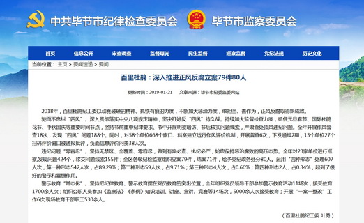 毕节市纪委监委网站:百里杜鹃:深入推进正风反腐立案79件80人