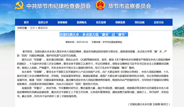 毕节市纪委监委网站:百里杜鹃大水:多点发力筑“廉关”过“廉节”