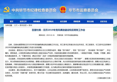 毕节市纪委监委网站:百里杜鹃:召开2019年党风廉政建设和反腐败工作会