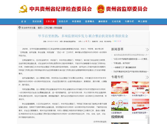 贵州省纪委监委网站:毕节百里杜鹃:多项监督同步发力 联合整治扶贫协作帮扶资金