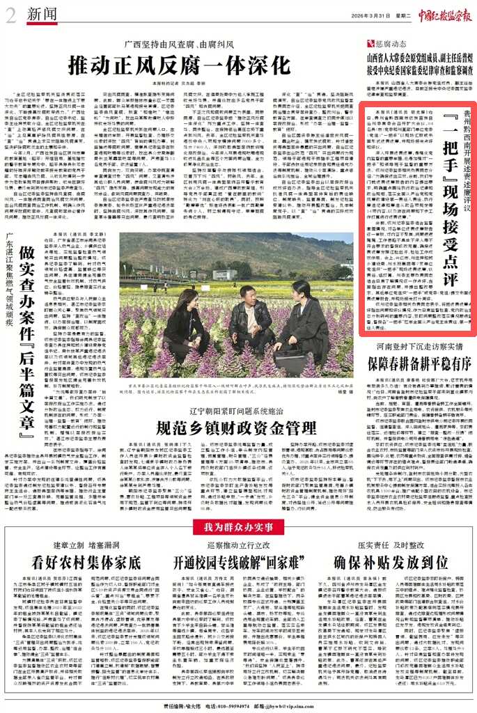 《中国纪检监察报》 | 贵州黔西南开展述责述廉评议 “一把手”现场接受点评
