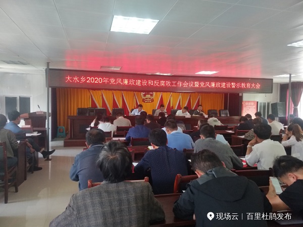 6月5日,正值世界环境日,大水乡召开了2020年党风廉政建设和反腐败斗争工作暨“一案一整改”警示教育大会,通过开展“一案一整改”警示教育、安排部署全乡党风廉政建设和反腐败工作、组织与会人员参观后坝社区廉政文化示范点向全体乡村干部配送了“廉政三件套”,将严的主基调传递到每个乡村干部身上,进一步筑牢不想腐的思想堤坝。