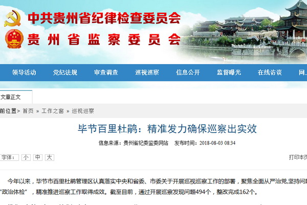 贵州省纪委监委网站:毕节百里杜鹃:精准发力确保巡察出实效