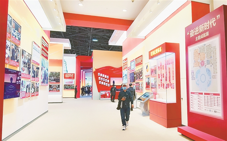 “奋进新时代”主题成就展于9月27日在北京展览馆开幕。图为观众在第十二单元“全面从严治党 保持党的生机活力”展区参观。中央纪委国家监委网站 聂新鑫 摄