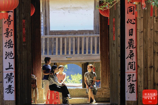 廊前厅下,一家姊妹在国庆假日相聚一堂,午后闲话,温馨自在。(福建省福州市闽侯县纪委监委供 程水华 摄)