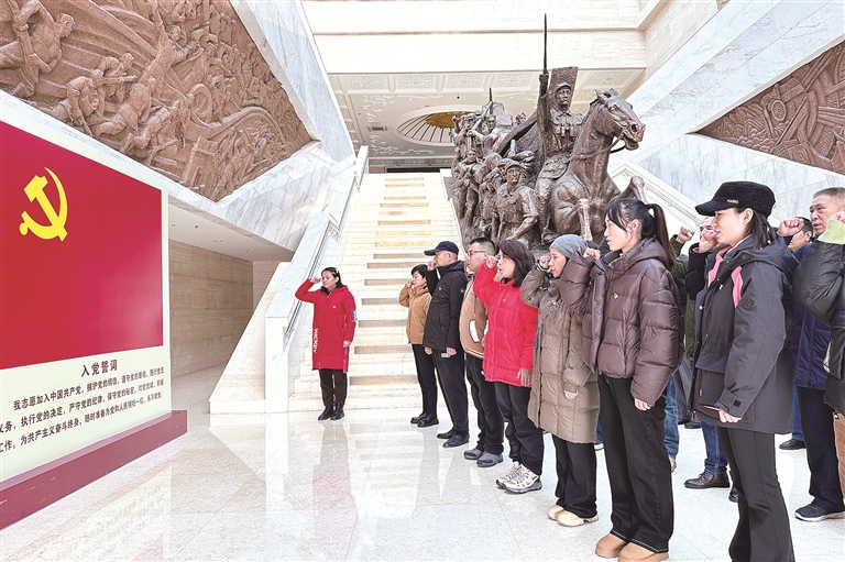 入党誓词,字字千钧,凝聚着每一名中国共产党人不忘初心、坚守理想的信念与力量。图为党员干部开展重温入党誓词活动。 图片来源:视觉中国