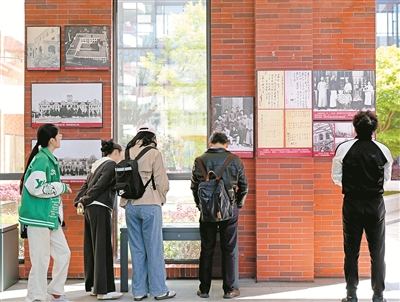 图为4月7日,在上海交通大学闵行校区东中院,人们在参观《国之所需 吾之所向——钱学森与上海交通大学》专题展。 新华社记者 刘颖 摄